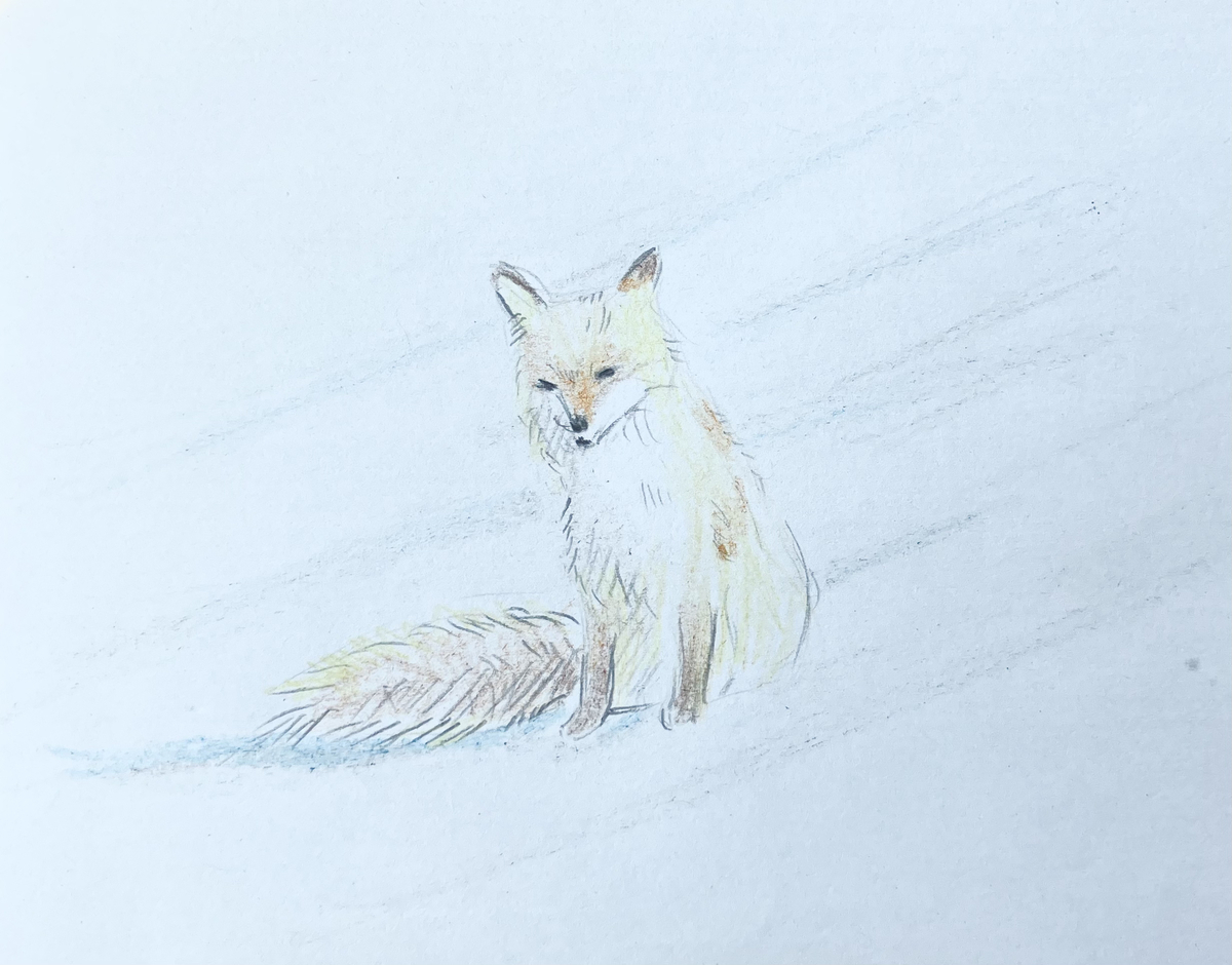 From the tips of her ears to the white tip of her tail, it looked as if she were wrapped in a blanket woven by snow spirits.